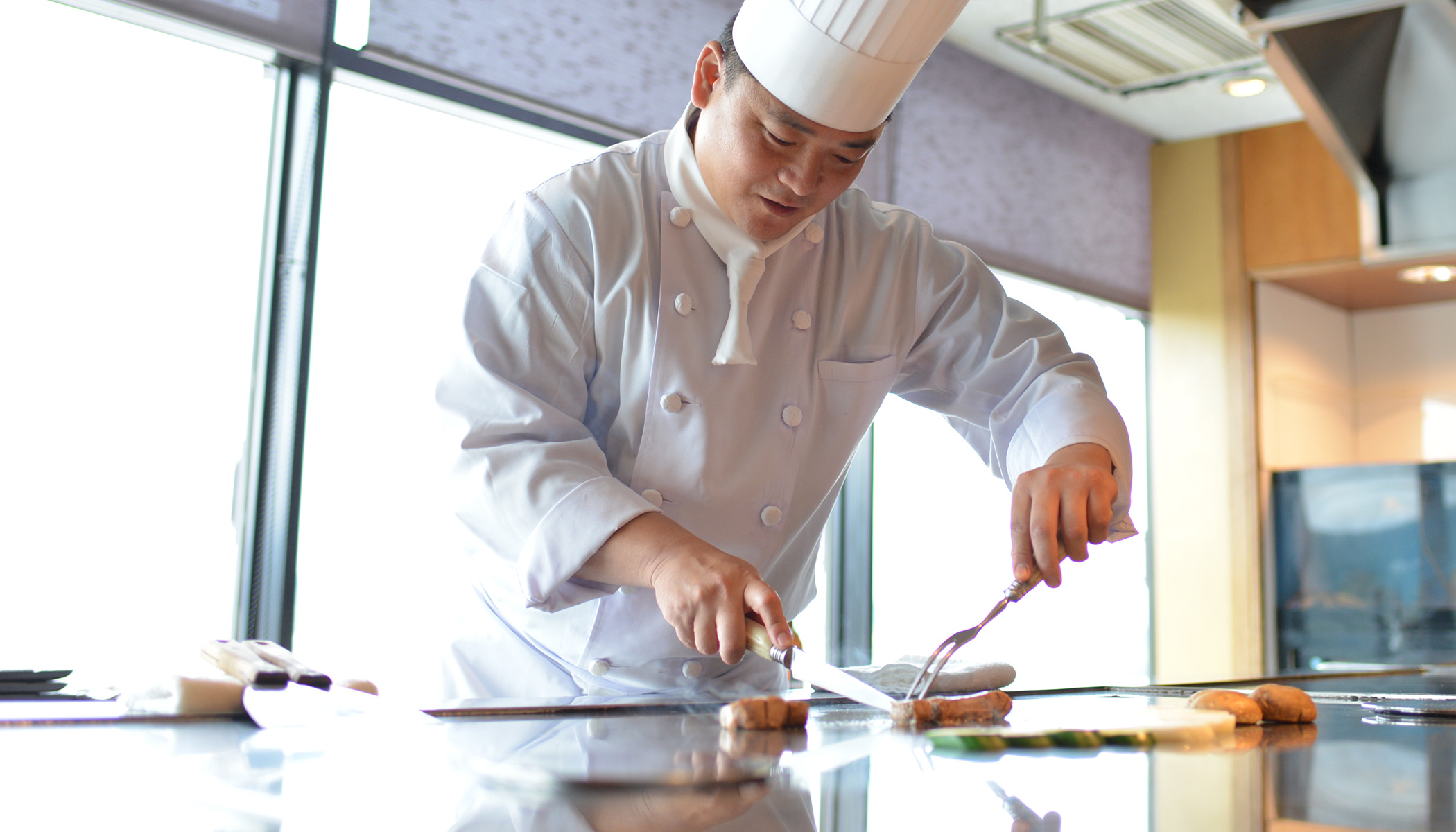 目の前で新鮮な魚介類や最上質の牛肉を焼き上げてくれる贅沢なおもてなし。